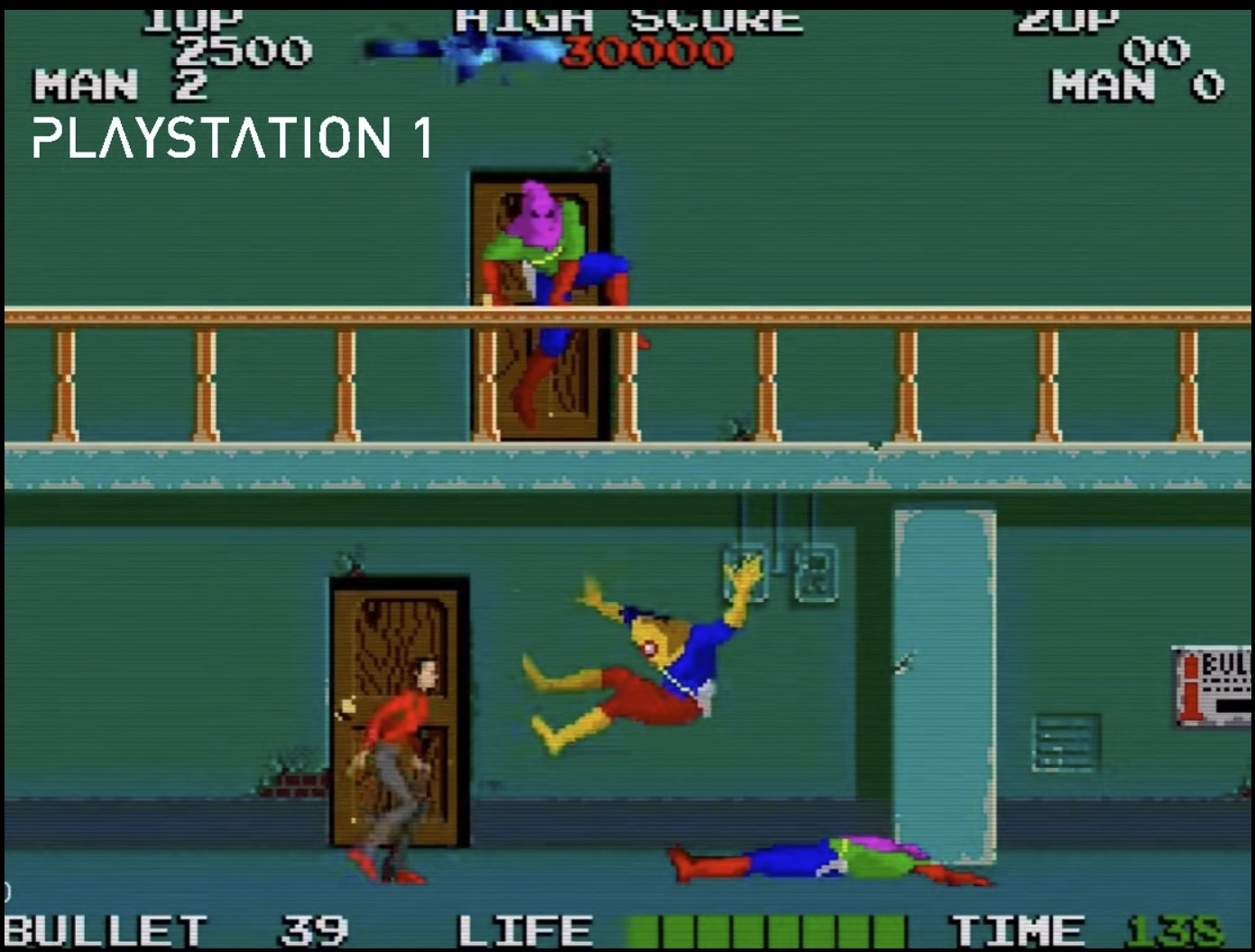 Die Funktionsweise von Rolling Thunder war für ein Arcade-Spiel innovativ. Spieler bewegten sich horizontal durch mehrstöckige Level, nutzten Deckungen und mussten mit begrenzter Munition haushalten, was eine taktische Herangehensweise erforderte. Türen in den Levels dienten nicht nur als Deckung, sondern auch als Nachschubpunkte für Munition und Waffen, was ein strategisches Element hinzufügte. „Wir wollten, dass der Spieler immer das Gefühl hat, dass jede Kugel zählt“, sagte Kishimoto. Das Gameplay kombinierte geschicktes Timing, Plattforming und schnelle Reaktionen, was den Spielern sowohl Frustration als auch immense Befriedigung bereitete, wenn sie schwierige Abschnitte meisterten.