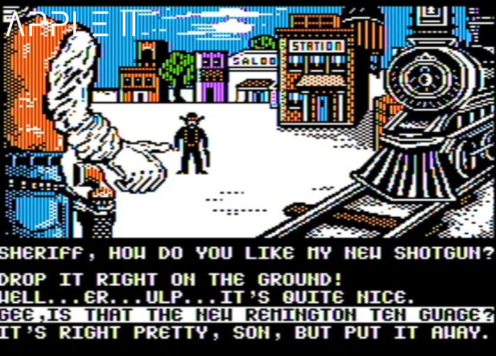 Der Spieler schlüpft in die Rolle des Sheriffs von Gold Gulch und begegnet an der staubigen Main Street verschiedenen Bewohner der Stadt. Vor dem Saloon trifft man den betrunkenen Revolverhelden, dessen beleidigte Reaktion zwischen einer harmlosen Rauferei und tödlichen Duellen pendelt. Daraufhin führt der Weg ins Saloon-Interieur, wo eine barkeeperin auf eure Höflichkeit oder Frechheit reagiert. Im Anschluss kann man die Bank aufsuchen, wo ein nervöser Manager über einen drohenden Überfall klagt. Ein kurzer Abstecher zur staubigen Smithy, der Schmiede, ermöglicht eine Szene mit dem ruppigen Schmied, und im Hinterhof des Saloons lauert der Friedhof, auf dem man Leichenbestatter und Grabsteine gleichermaßen provozieren kann. Jeder dieser Schauplätze ist mit eigenständigen Grafik-Assets und Sound-Loops hinterlegt, sodass die Atmosphäre vom Knarrz der Saloon-Tür bis zum Klirren von Hufeisen eindringlich wirkt.