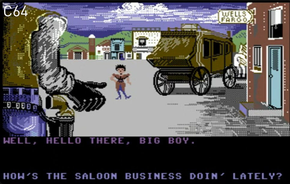 Die Dialogmechanik basiert auf vier Textoptionen: höflich, neutral, aggressiv oder drohend. Je nach Wortwahl eskaliert das Gespräch zu einem Duell, in dem Millisekunden über Leben und Tod entscheiden. Das Duellsystem nutzt eine einfache GOTO-basierte Code Sequenz, die den Spieler mit zufälligen Blickwinkeln konfrontiert, ehe sich der Counter zum Schuss löst. Mimi Doggett entwarf die Pixelgrafiken, während Ed Bogas den Soundtrack komponierte und so den Ton von „Western-Ambiente“ mit simplen Chiptune-Melodien einfing.