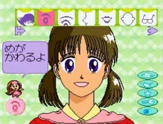 • 似顔絵アーティスト( Nigaoe Aeisuto , Nigaoe-Künstler oder Porträtkünstler), kritzeln Sie auf Gesichtsvorlagen, um ein Porträt zu erstellen. Diese Software bietet eine feinere Steuerung als „Anime Land“ und kann auch auf Aufkleber gedruckt werden.