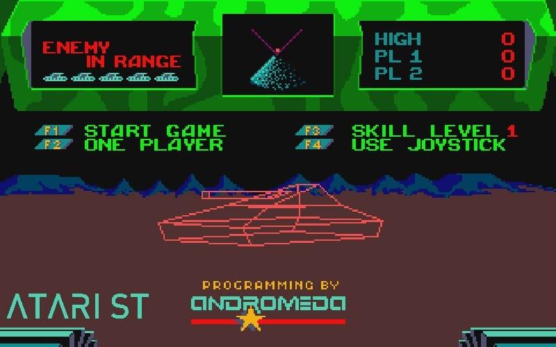 Ginge es nach Lt. Frank Drebin aus „The Naked Gun“ existieren nur wenige Möglichkeiten, wie ein echter Mann zu sterben hat: „Ein Fallschirm, der sich nicht öffnet. Unter die rasselnden Raupen eines Panzers zu geraten. Die Eier von einem Watussi abgebissen zu bekommen, so möchte ich mal sterben!“ Möglichkeit 1 und 3 sind kaum umzusetzen, aber Atari bot bereits 1980 die Möglichkeit ein Stahlmonster zu befehligen und Feindpanzer unschädlich zu machen. Die Designer Ed Rotberg, Owen Rubin und Roger Hector designten ein Spiel aus der Ego Perspektive, dass den Spieler in eine öde Landschaft versetzt, die aus grünen Vektorgrafiken besteht. Die Aufgabe ist nun feindliche Panzer mithilfe der Kanone auszuschalten und dabei nicht selbst abgeschossen zu werden.