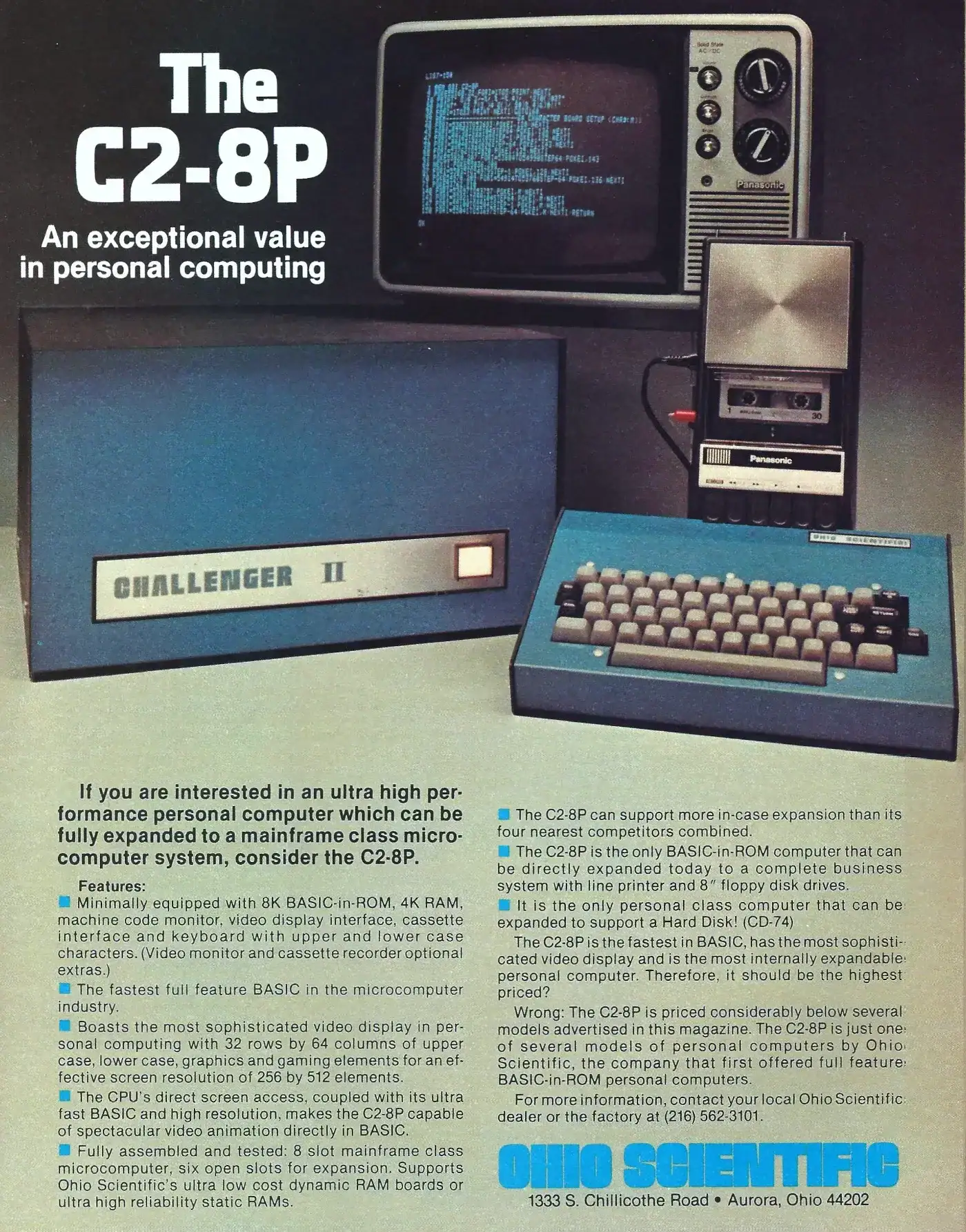 Der Ohio Scientific Challenger II, meist kurz C2 genannt, erschien zwischen 1977 und 1979 als konsequente Weiterentwicklung der populären Superboard-Serie des US-amerikanischen Herstellers Ohio Scientific Instruments (OSI). Das Unternehmen, gegründet 1975 im Bundesstaat Ohio durch den Ingenieur Michael Cheiky, seine Frau Charity Cheiky sowie den Techniker Dale A. Dreisbach, hatte sich zum Ziel gesetzt, erschwingliche, aber leistungsfähige Mikrocomputersysteme mit professionellem Anspruch zu entwickeln – eine Philosophie, die sich im C2 deutlich widerspiegelt.