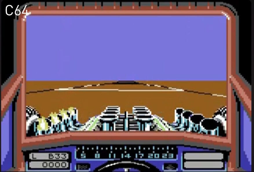 Die Amiga-Version gilt als die Urfassung, auch wenn es parallel Umsetzungen für C64, Atari ST, MS-DOS und sogar Amstrad gab. Aber auf dem Amiga war das Spiel ein technisches Kunststück. Vollbild-3D-Grafik, butterweiches Scrolling und ein Fahrzeug, das sich nicht einfach nur über die Strecke schob, sondern wog, federte, stürzte und bei harten Landungen öffentlich seinen Rahmen riss. Ja, Stunt Car Racer hatte sichtbaren strukturellen Schaden. Wenn der Rahmen zu viele Risse hatte, ging das Rennen zu Ende. Realismus auf die harte Tour.