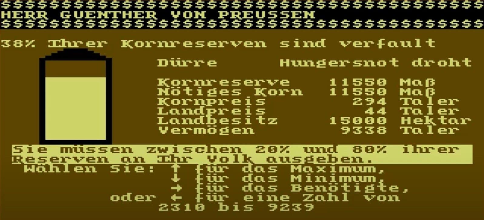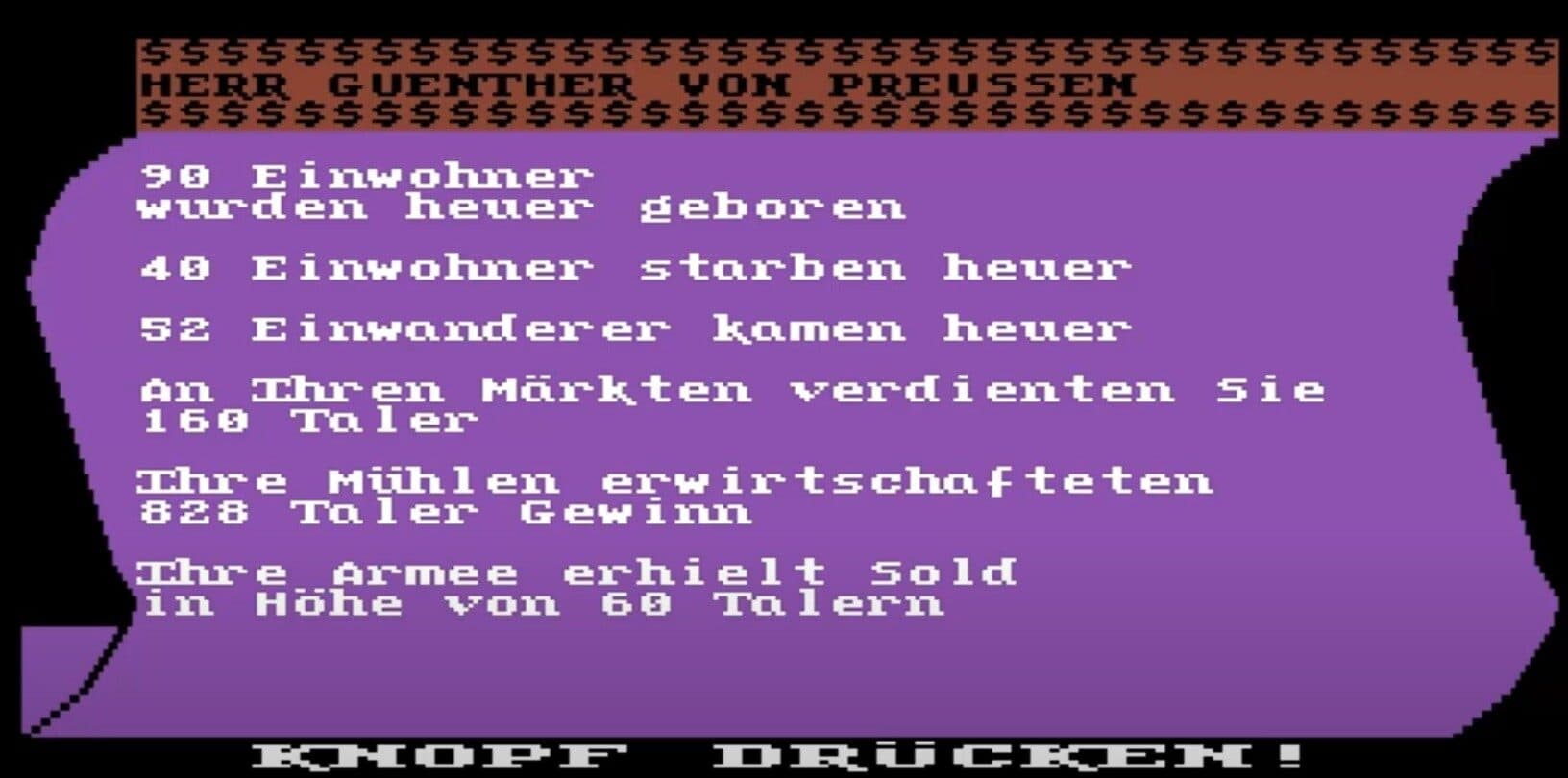 Interessante Trivia gefällig? In einer frühen Version gab es eine versteckte Zeile, bei der das Programm fragte: „Bist du ein echter Preuße?“ Wer mit Ja antwortete, startete mit 1000 Talern weniger – ein scherzhafter Anti-Preußen-Gag des bayerischen Entwicklers, der später entfernt wurde. In einer weiteren Version wurde für Testzwecke ein Schummelmodus integriert: Mit STRG+Z konnte man das Todesjahr manipulieren – ein Feature, das man im Freundeskreis nur unter Eid weitergab.