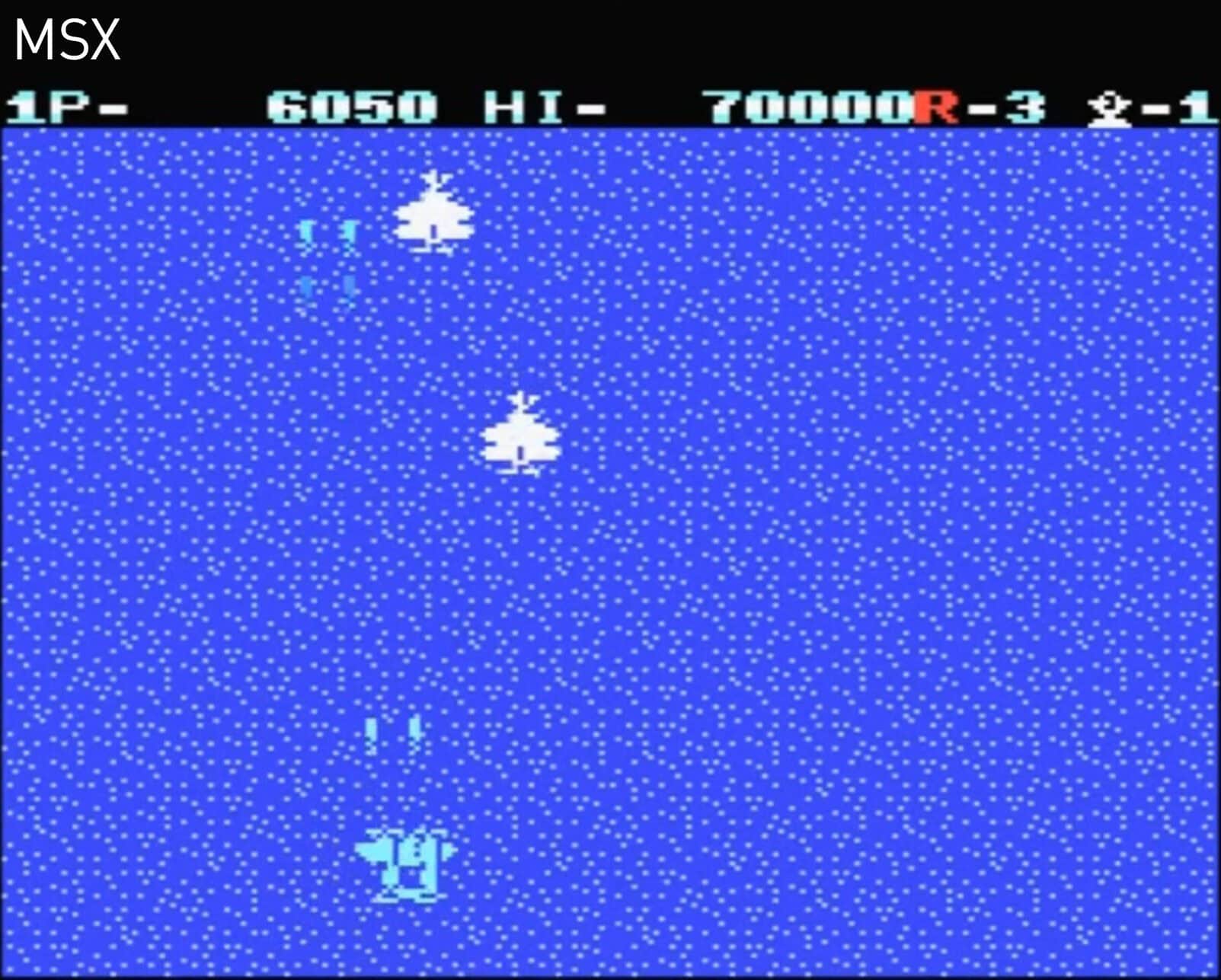 Die Portierungen sorgten für Diskussionen, da die technischen Unterschiede unübersehbar waren. Auf dem Commodore 64 glänzte 1942 durch flüssige Scrolling-Routinen, doch die Grafik wirkte grob und die Musik blieb hinter den Arcade-Klängen zurück. In der ASM 11/86 hieß es nüchtern: „Die Grafik ist zu eintönig, der Sound wenig abwechslungsreich“ – Ergebnis waren 7 von 12 Punkten. Die Spectrum-Version hingegen war grafisch stark reduziert, bot aber eine erstaunlich schnelle Darstellung der Sprites, die das Fehlen von Farben beinahe vergessen ließ. Die Amstrad-CPC-Fassung punktete mit bunteren Hintergründen, allerdings auf Kosten der Geschwindigkeit. Auf dem NES, das Capcom selbst in den USA veröffentlichte, bekam das Spiel eine ganz eigene Handschrift: die Steuerung war präzise, der Sound knackiger und die Gegnerformationen leicht abgewandelt, sodass viele Spieler die NES-Version bis heute als eigenständige Interpretation sehen.