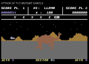 Mit dem Wechsel auf leistungsfähigere Heimcomputer wie den Commodore 64 erreichten Minters Ideen erstmals eine Plattform, auf der sie sich visuell und technisch deutlicher entfalten konnten. Eines der bekanntesten Ergebnisse dieser Phase war Attack of the Mutant Camels von 1983.
