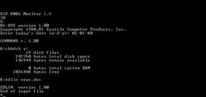 Die ersten Versionen von 86-DOS waren bewusst minimalistisch gehalten. Das System bot nur eine begrenzte Zahl grundlegender Befehle – etwa zwanzig interne und externe Kommandos –, mit denen Dateien verwaltet und Programme gestartet werden konnten. Für Entwickler reichte diese Umgebung jedoch aus, um erste Anwendungen für den neuen 16-Bit-Prozessor zu schreiben.