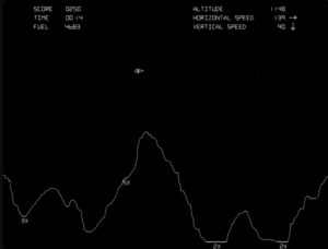 Den Ausgangspunkt bildet eine Fassung aus dem Jahr 1969, geschrieben von Jim Storer auf einem PDP-8. Das Programm entstand in der Sprache FOCAL, die für mathematische Berechnungen konzipiert war. Von Unterhaltung im heutigen Sinne kann hier kaum die Rede sein. Der Benutzer gab in regelmäßigen Abständen Schubwerte ein, woraufhin der Rechner Höhe, Geschwindigkeit und verbleibenden Treibstoff ausgab. Die Simulation lief rundenbasiert, und jede Eingabe stellte eine Entscheidung dar, deren Konsequenzen erst im nächsten Schritt sichtbar wurden. Es war ein Dialog zwischen Mensch und Maschine, geprägt von Zahlen, nicht von Bildern.