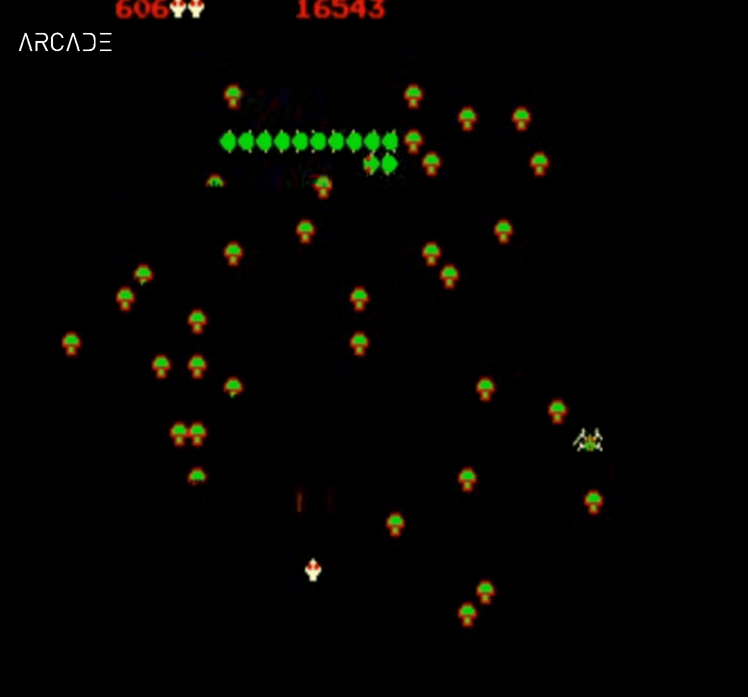 Technisch nutzte Centipede zudem einen hardwarebasierten Zufallsmechanismus, gekoppelt an den Atari-Pokey-Chip. Dadurch variierte das Spielfeld von Runde zu Runde – ein Ansatz, der sich deutlich von den festen Angriffsmustern früherer Titel wie Space Invaders oder Galaxian unterschied. Pilzverteilung, Gegnerbewegungen und Bedrohungslagen wirkten weniger berechenbar und gaben dem Spiel eine Dynamik, die über das reine Reaktionsspiel hinausging. Besonders die Spinne wurde so zu einem unberechenbaren Faktor, dessen Auftreten durch ein charakteristisches Geräusch angekündigt wurde – eine frühe Verbindung von Sound und Spielmechanik.
