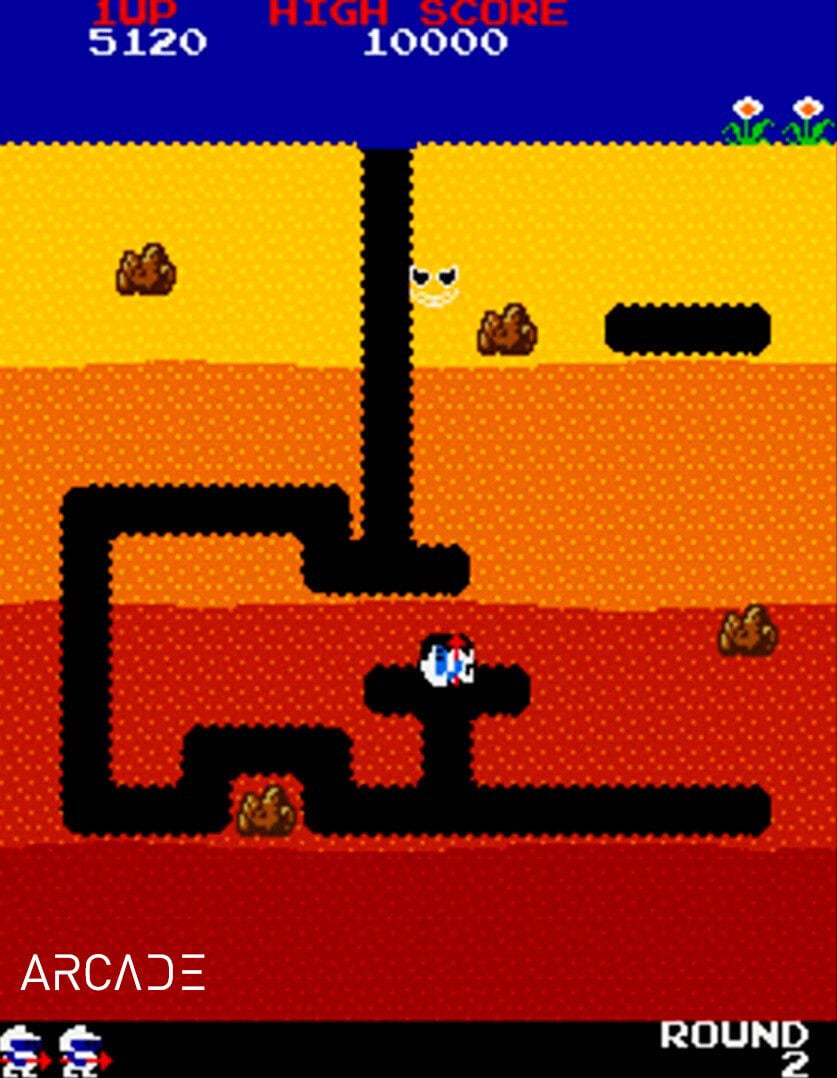 „Dig Dug“, veröffentlicht 1982 von Namco, zählt zu den Ikonen der goldenen Ära der Videospiele und hat sich mit seinem einzigartigen Spielkonzept, seinen charmanten Charakteren und einer überraschenden Tiefe weltweit in das Gedächtnis der Spieler eingebrannt. Die Entwicklung begann 1981, als Masahisa Ikegami gemeinsam mit Shigeru Yokoyama, bekannt als Schöpfer von „Galaga“, an dem Projekt arbeitete. Die Programmierung lag in den Händen von Shouichi Fukatani und Toshio Sakai, während Yuriko Keino für die Musik verantwortlich zeichnete. Sie entschied sich für eine eingängige Melodie, da realistische Schrittgeräusche technisch schwer umsetzbar waren, wie sie später in einem Interview sagte: „Ich wollte, dass sich die Bewegung lebendig anfühlt, ohne dass es aufgesetzt wirkt.“ Für die visuellen Aspekte war Hiroshi „Mr. Dotman“ Ono zuständig, ein Pionier der Pixelkunst, der das farbenfrohe und unverwechselbare Design von „Dig Dug“ prägte.