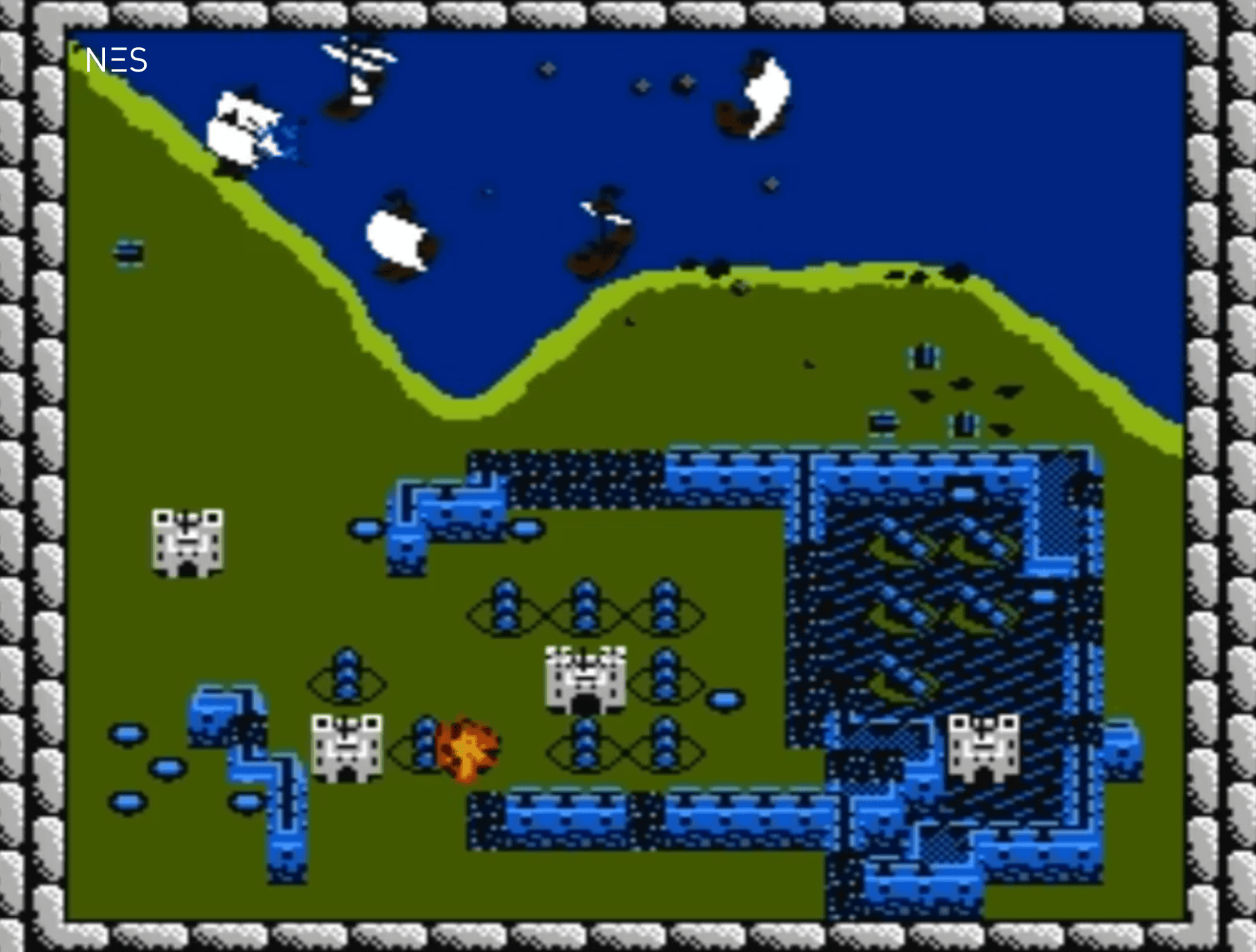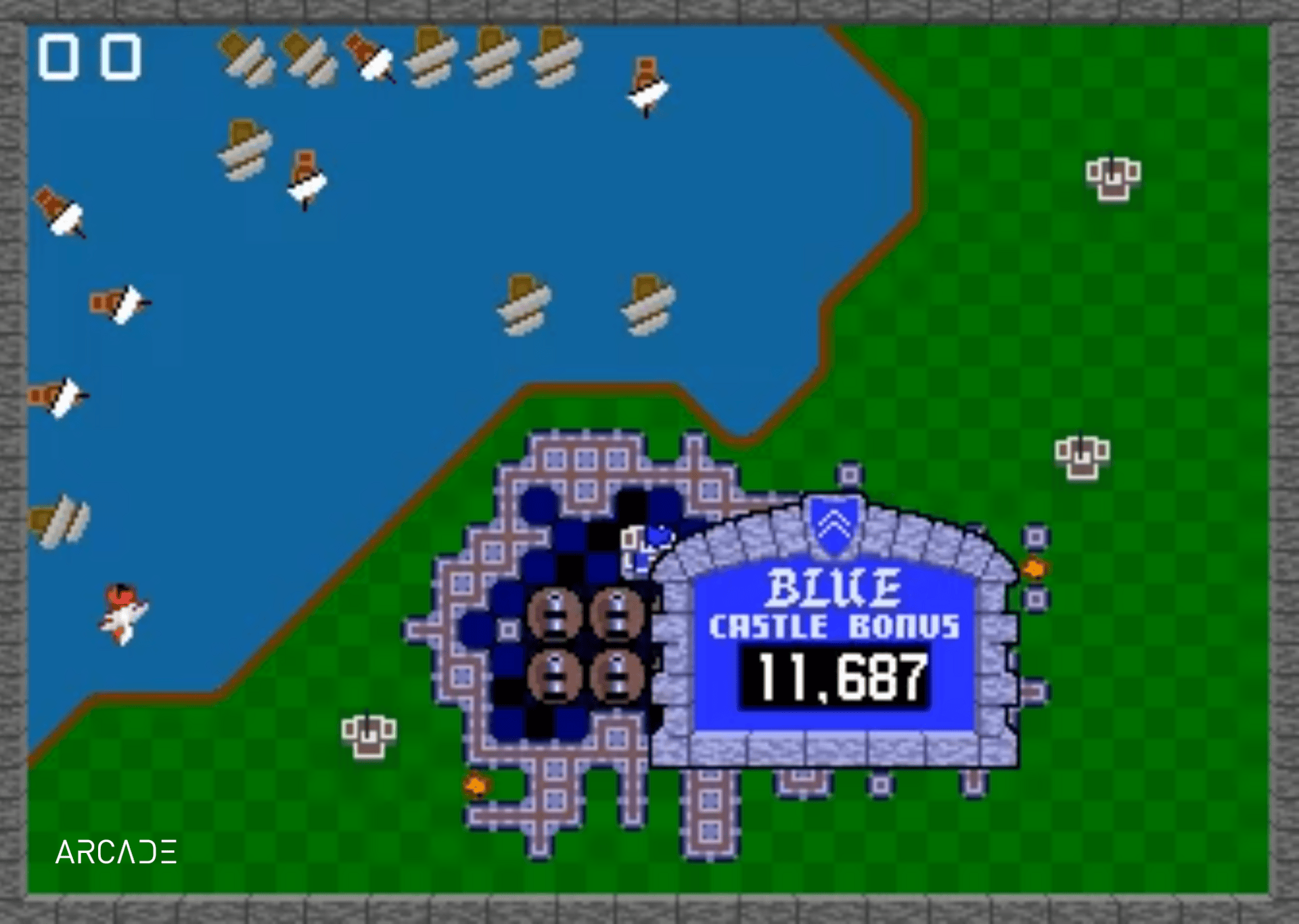 Das Spielprinzip ist schnell erklärt, entfaltet aber eine erstaunliche Tiefe. Jede Runde gliedert sich in zwei Phasen. In der Kampfphase steuert der Spieler ein Fadenkreuz und feuert Kanonenkugeln auf anrückende Feinde oder die Burgen der Mitspieler. Die Geschosse fliegen in einem Bogen, was vorausschauendes Zielen erfordert. Nach Ablauf der Zeit beginnt die Bauphase, in der beschädigte Mauern mit zufällig erscheinenden Mauerstücken repariert werden müssen. Diese an Tetris erinnernden Formen zwingen den Spieler, unter hohem Zeitdruck räumlich zu denken. Nur vollständig geschlossene Mauerringe sichern Burgen und Kanonen; bleibt am Ende keine ummauerte Festung übrig, ist die Partie verloren. Gerade dieses Wechselspiel aus Zerstörung und Wiederaufbau verleiht Rampart seinen unverwechselbaren Rhythmus.