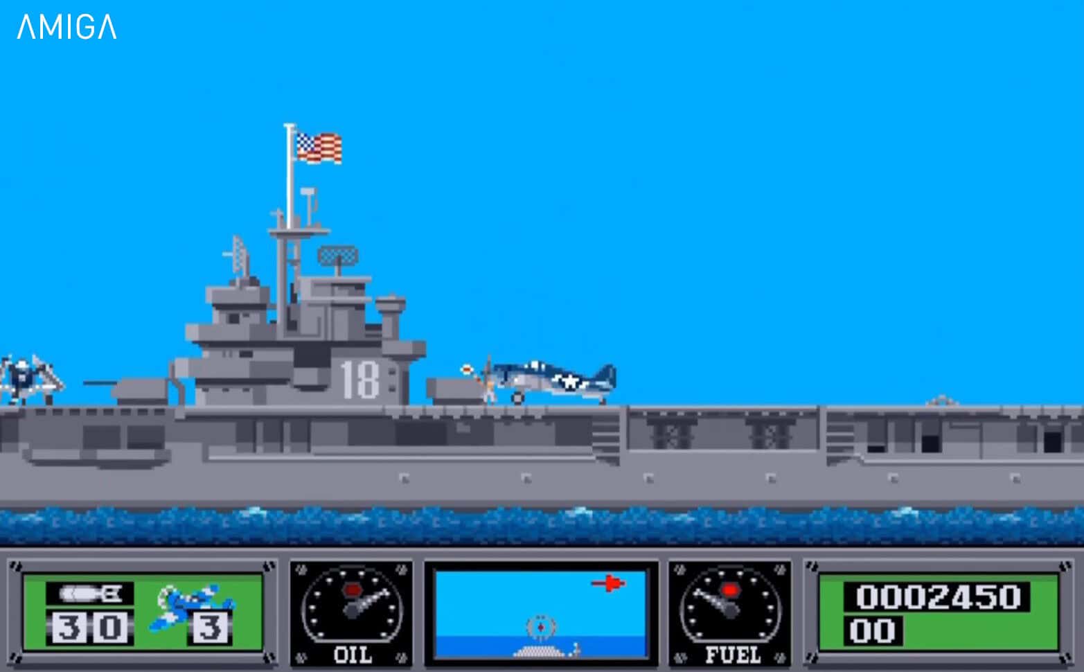 Wings of Fury, von Brøderbund im Dezember 1987 veröffentlicht, war ein ungewöhnlicher, stilisierter Mix aus Shoot-'em-up und Simulation, der sich in der Ästhetik eher an Spielhallenklassiker anlehnte, inhaltlich jedoch überraschend ernst war. Entwickelt wurde das Spiel ursprünglich von Steve Waldo, einem der weniger bekannten, aber technisch versierten Designer, der zuvor an Tools und internen Konvertern für Brøderbund mitgearbeitet hatte. Die Musik und Sounds wurden von Kris Hatlelid beigesteuert, wobei die PC-Version mangels Sound-Hardware auf einfache Effekt-Cues beschränkt blieb. Die Amiga- und Apple-II-Versionen nutzten einfache Sampleeffekte und systemnahe Töne, boten aber keine musikalische Untermalung im eigentlichen Sinne.