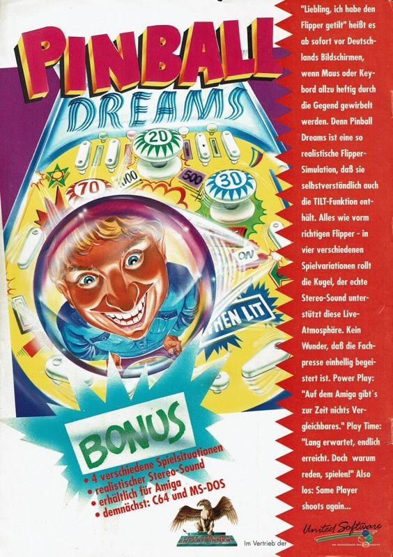 Pinball Dreams ist eine Flippersimulation, die 1992 vom schwedischen Entwicklerstudio Digital Illusions veröffentlicht wurde. Die Entwicklung von Pinball Dreams begann 1988, als Mikael Balle, ein Mitglied der Demoszene-Gruppe The Silents, erste Flipper-Tische auf dem Amiga entwarf. Obwohl seine Entwürfe nicht direkt im Spiel verwendet wurden, inspirierte seine Idee, Tische größer als den Bildschirm zu gestalten und vertikal zu scrollen, das spätere Design. 1989 starteten Andreas Axelsson (Programmierung), Ulf Mandorff (Ballroutine), Markus Nyström (Grafik), Olof Gustafsson (Design und Musik) und Fredrik Liljegren (Teamkoordinator) die eigentliche Entwicklung. Mandorff, ein Ingenieurstudent, arbeitete sechs Monate an der Physik-Engine des Balls. Gustafsson, ein begeisterter Flipper-Fan, verbrachte täglich Stunden in Spielhallen, um reale Flipperautomaten zu studieren, Punktestände und Ereignisse für die Tische zu notieren und Geräusche echter Automaten aufzunehmen. Für die Entwicklung des digitalen Flippers verwendete das Team neben DeLuxe Paint III auch ProTracker 1.1, den DevPak Assembler und als Cruncher den PowerPacker 2.0b.