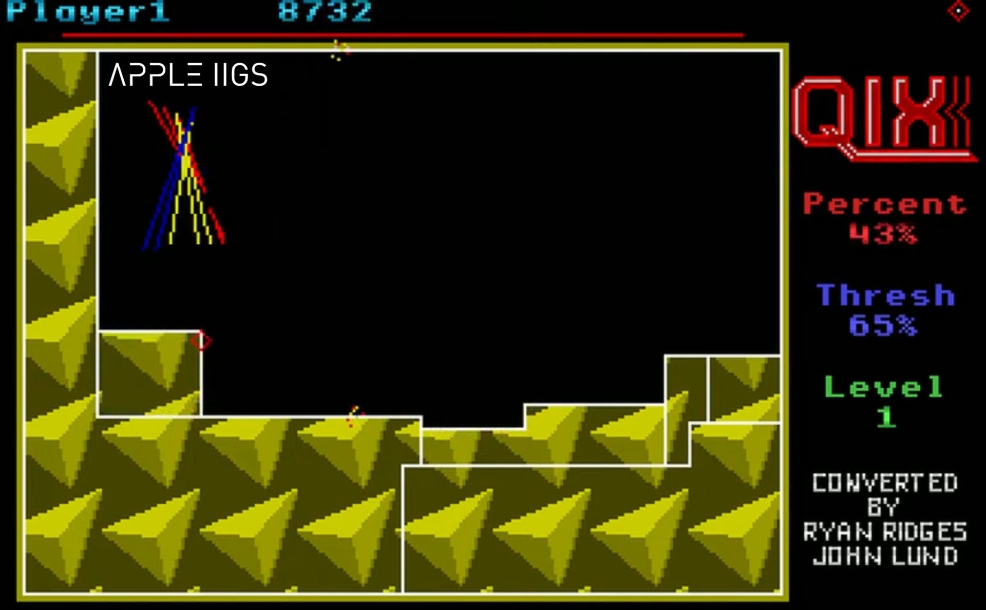 Qix. Allein schon der Name klingt wie ein Reizhusten mit Highscore: „K-K-K-Qix!“ Was nach einem obskuren Zauberspruch aus einem nicht lizenzierten „Harry Potter“-Spin-off klingt, war 1981 eines der unverständlichsten, aber auch fesselndsten Spiele, das je einen Arcade-Automaten unsicher machte. Entwickelt wurde der beinharte Zeitvertreib von Randy und Sandy Pfeiffer, einem amerikanischen Ehepaar, das offensichtlich sehr viel Spaß daran hatte, Spielern das finale Aggressionspotential zu entlocken. Die Grundidee war eigentlich simpel: ein kleines Viereck, ein paar Linien, ein paar Feinde und jede Menge Nervenzusammenbrüche. „Sort of like video-game Etch-a-Sketch“, sagte Sandy später. Auf Deutsch: „So eine Art Etch-a-Sketch als Nervensäge.“ Und wer nicht weiß, was ein Etch-a-Sketch ist: Das ist diese rote Plastiktafel mit den zwei Drehknöpfen, mit der man als Kind stundenlang versuchte, einen Kreis zu malen, und am Ende doch wieder nur ein zittriges Treppenhaus rausbekam. Also ein Zeichenbrett mit eingebautem Frustfaktor – quasi der Urvater aller unfreiwilligen Pixelkunst. Der Name „Qix“ übrigens entstand, weil Randy ein Autokennzeichen hatte, auf dem „JUS4QIX“ stand. Übersetzung? „Just for kicks“, also „nur zum Spaß“. Ironisch, denn das Spiel war für viele eher „just for heart attacks“.