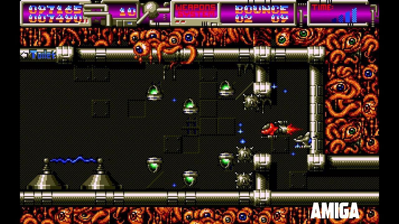 In "Cybernoid" übernimmt der Spieler die Kontrolle über ein Raumschiff, das durch labyrinthartige Höhlensysteme navigiert, um gestohlene Fracht von Weltraumpiraten zurückzuerobern. Das Spiel zeichnet sich durch seinen hohen Schwierigkeitsgrad und die Notwendigkeit strategischer Planung aus, da der Spieler eine Vielzahl von Waffen und Verteidigungssystemen einsetzen muss, um Feinde und Hindernisse zu überwinden.