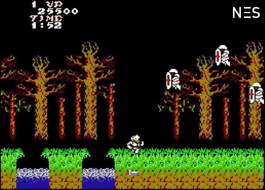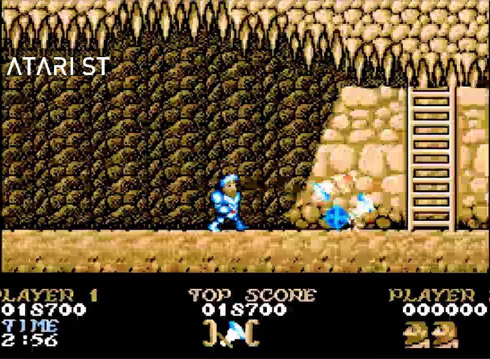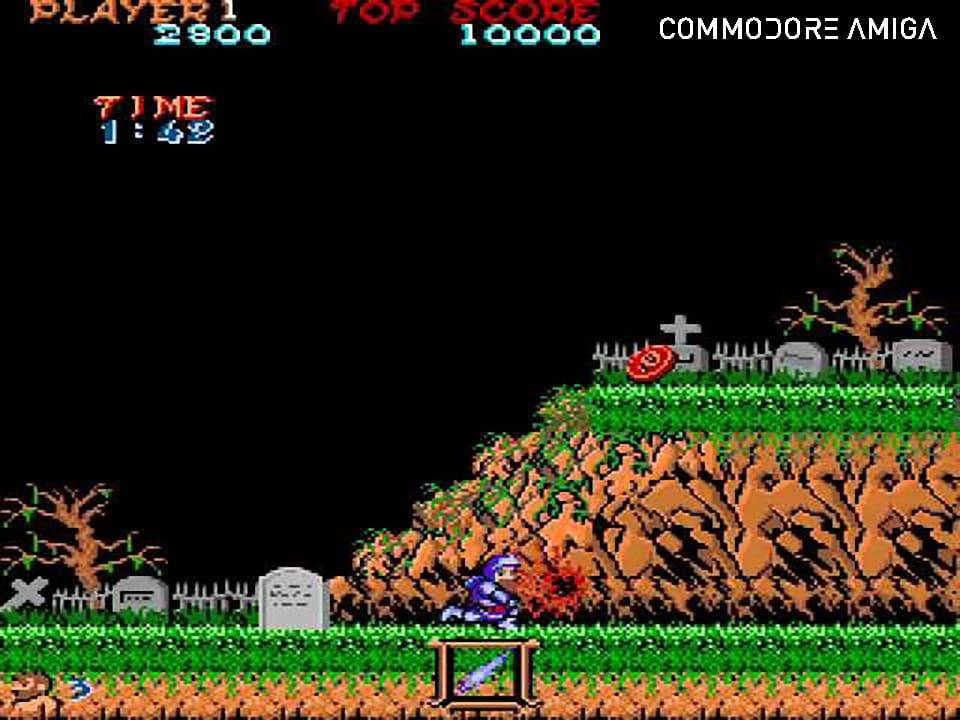 Ein Ritter hat schon einen harten Arbeitsalltag: ständig ist er auf der Hut vor Feindeskräften, hat dazu eine knüppeldicke Ausbildung hinter sich, inklusive Benimmregeln am Tisch und muss dazu noch eine Rüstung mit einem Gewicht von etwa 30 Kilogramm tragen. Armer Sir Arthur! Denn dieser hat den Ruf der Prinzessin Prin vernommen und erhört. Diese ist von Astaroth gefangengenommen worden und harrt nun ihrer Befreiung im Dorf der Dämonenwelt, so die Übersetzung des japanischen Titels Makaimura, hierzulande ist das Spiel eher unter dem Namen Ghost `n Goblins bekannt, verehrt und gefürchtet. Sir Arthur hat das Glück gegen Zombies, Riesen, Dämonen, Zyklopen und Drachen kämpfen zu dürfen. Regisseur Tokuro Fujiwara, der auch unter den Pseudonymen Professor F oder Arthur King bekannt ist, hatte mit dem Ritter keine Gnade, denn das Spiel ist knüppelschwer. Zwei Treffer reichen, um den Ritter im ersten Moment im Schlüpfer durch die Gegend rennen zu lassen und später zur Strecke zu bringen.
